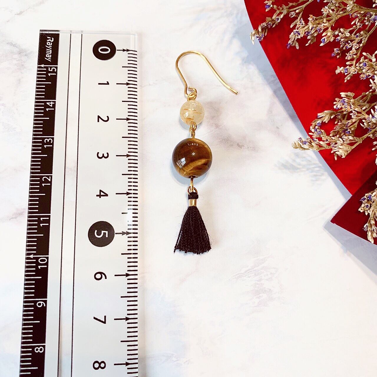 『天然石』タイガーアイ×ルチルクォーツのピアス・イヤリング
